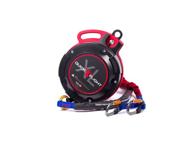 Every QuickFlight XL comes with an upper webbing attached to a RipCord option and two carabiners (with lanyard keepers) on the webbing line. You will need separate mounting equipment to mount the QuickFlight XL device, NOT INCLUDED. We recommend purchasing the QuickFlight Mounting Kit.